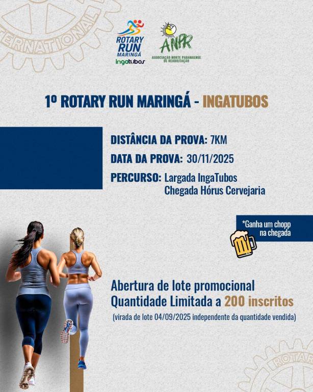 O Rotary Club de Maringá-Colombo orgulhosamente lançou, em 1º de setembro de 2025, a Rotary Run Maringá Ingatubos — sua primeira corrida de rua, que já chega como promessa de sucesso, inspirando união, saúde e transformação social. O lançamento ocorreu durante um almoço na sede do clube, reunindo diretoria, membros, patrocinadores e parceiros.